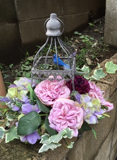 アレンジしました。鳥かごがしっかり見えるように花は高さは出さずに籠から