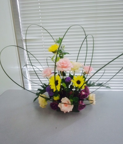 籠の中のアレンジもスチールグラスも大きくのびやかにできました。
