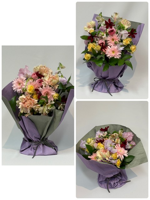 バレンタインデーに贈る春色のアレンジメントそのまま飾れる花束スタンディングブーケをイメージして…試行錯誤しながら頑張ったラッピング!